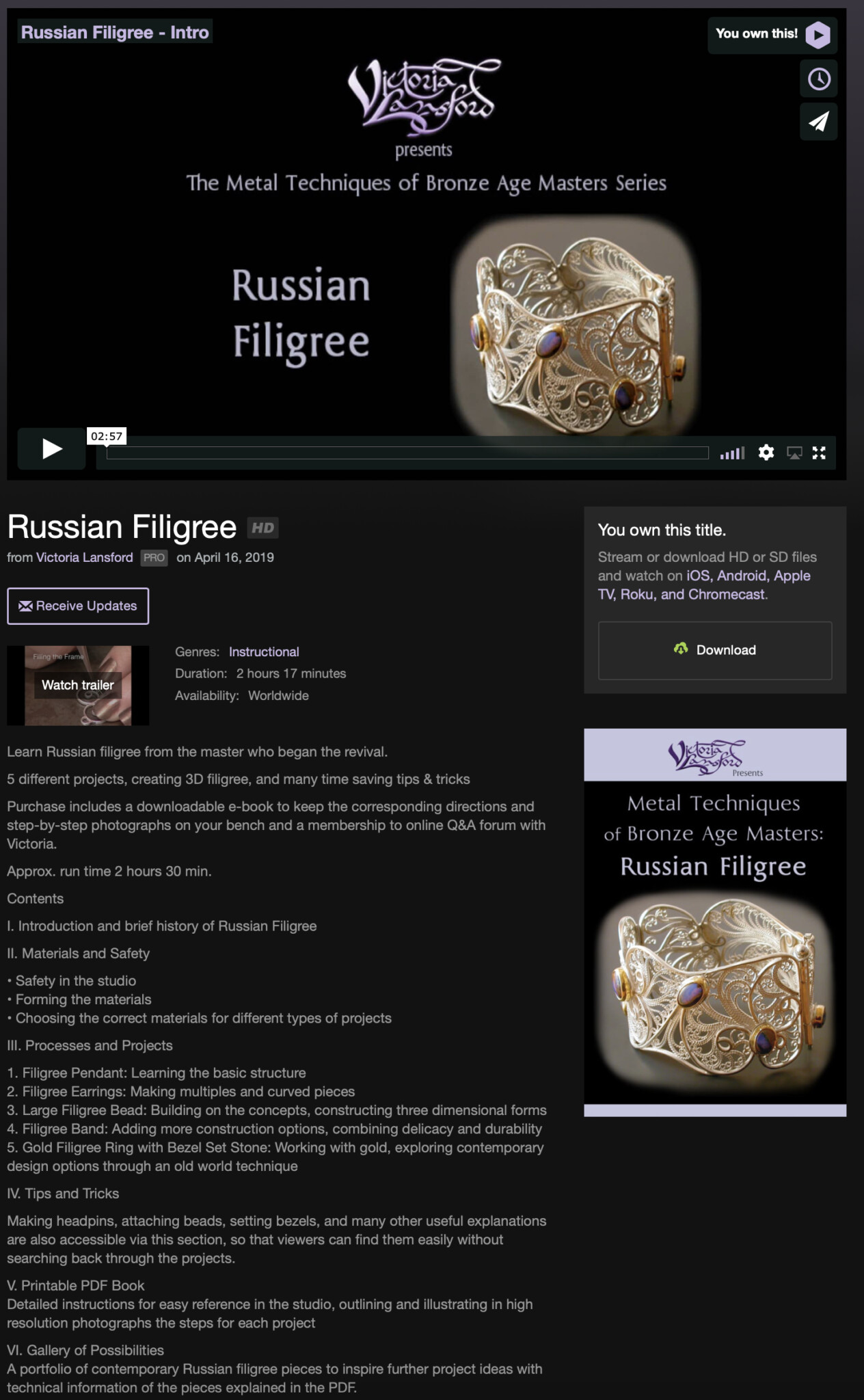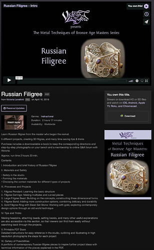 I purchased the online streaming version of Victoria Lansford’s Russian Filigree…I shoulda bought the DVD…i think i bought streaming by mistake…?…i forgot…
