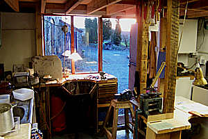 "I’m in North Wales, UK. My studio is in a 250 year old stone built stable (walls are 2ft thick - what a waste of space!) next to my home which is an old coach house for the village rectory. I can see the Clwydian Hills from my window. My old mate and 'smith Stan Vyner used to say when he came to visit my workshop “bad sign to see it too tidy - means you’ve got time to tidy it up”. Used that excuse for years - seems I might be getting tidier in my old age - or just more relaxed about the workload!
