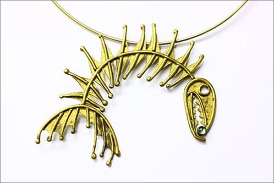 This piece also represents my design philosophy of bringing together differences – here, a rendering of a decayed and fossilized fish skeleton with a modern bodily ornament – to create a unique piece that keeps clients and viewers intrigued.