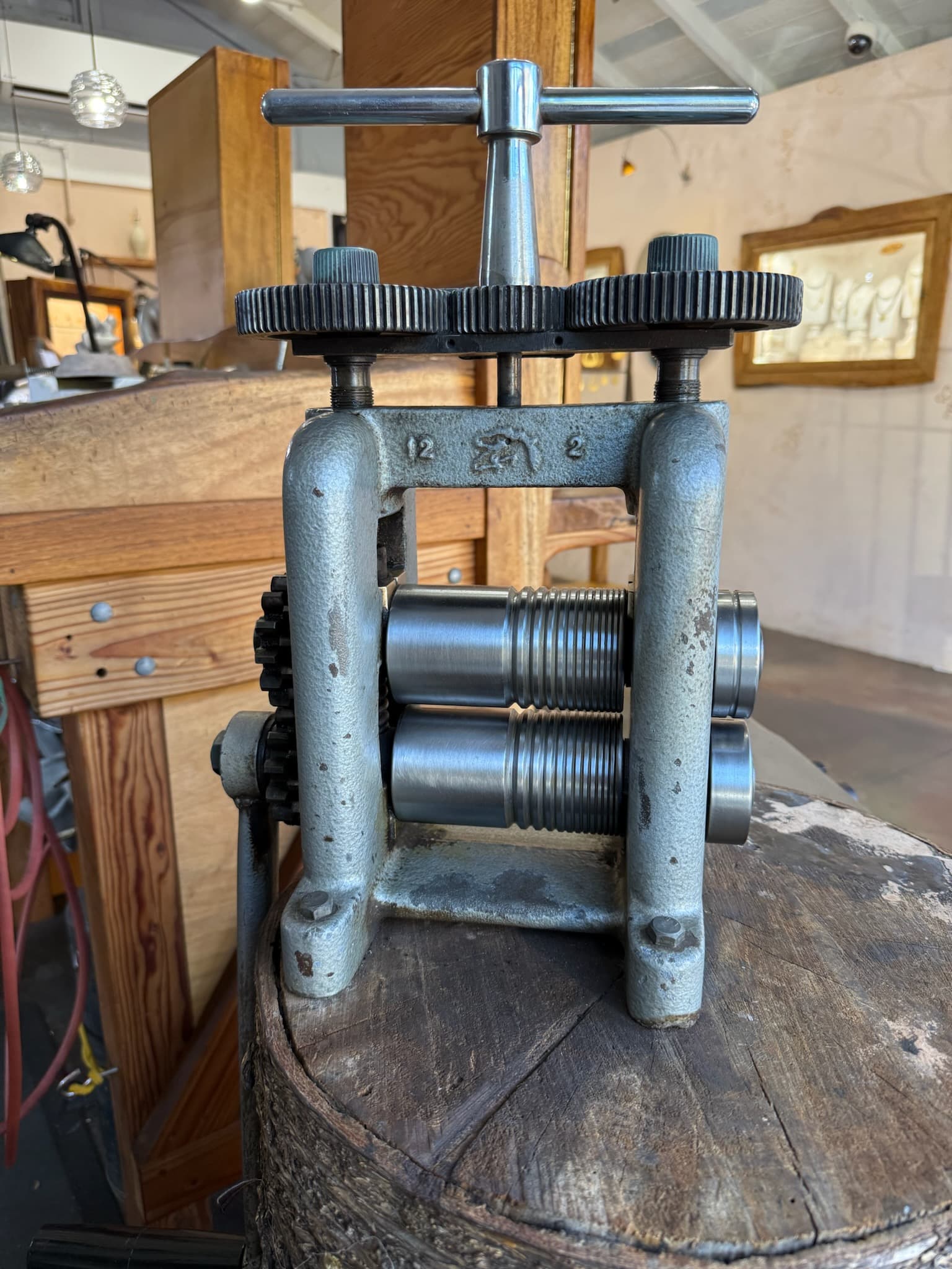 The pictured rolling mill is by Filli Cavallin…I have a similar one. (see the 2 horse heads, raised logo)