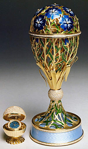 This is an easter egg that I made over twenty years ago for Asprey, the egg shells were plique e-jour enamelled, and the oval rock crystal clock that fits inside has an enamelled face.