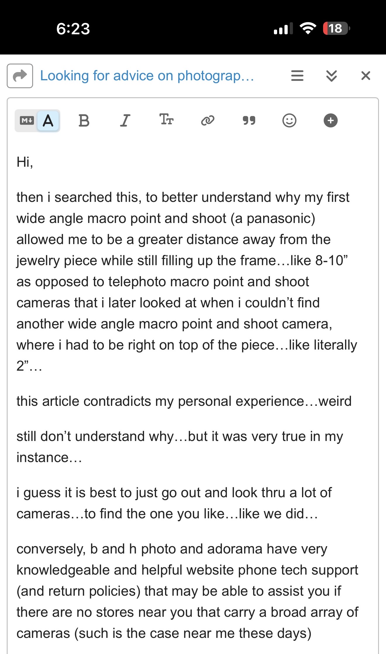 i ended up buying a nikon camera body and a 1:1 prime macro lens…105mm macro and then later got other lenses…60mm macro…i like the 60mm better…gotta stand too far away with the 105mm