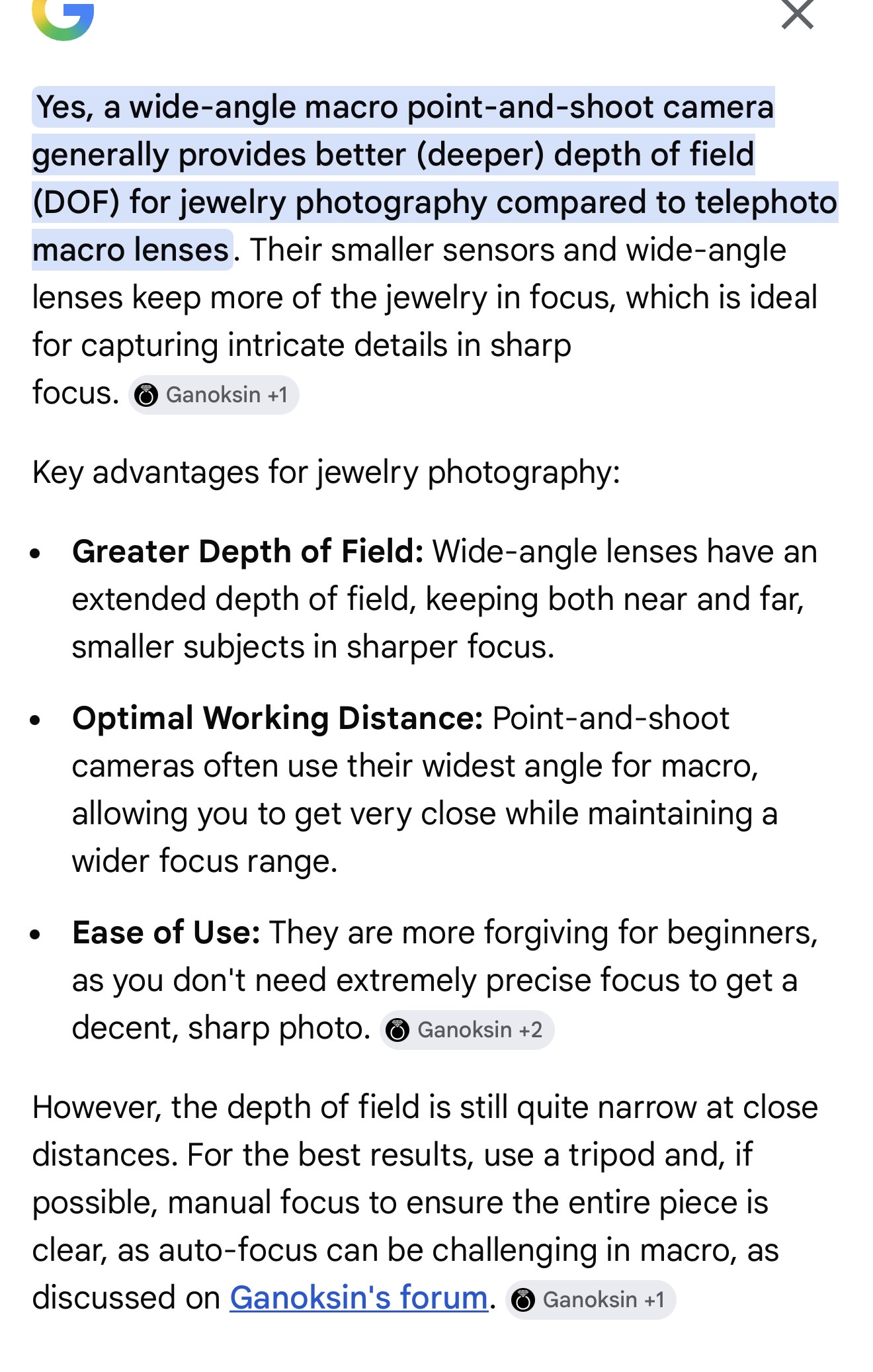 realistic expectations…shooting 1:1 prime macro has a very shallow depth of field…basically one distance point will be most in focus with front and back points blurred…professionally jewelry photos are corrected in “post production” software (a whole nother skill) using “photo stacking…where they take successive photos as they move the camera (usually on a professional stand/ track) with each shot focusing on a different point, from front to back…then they “magically” combine all the photos to get an image where the whole object is in focus…