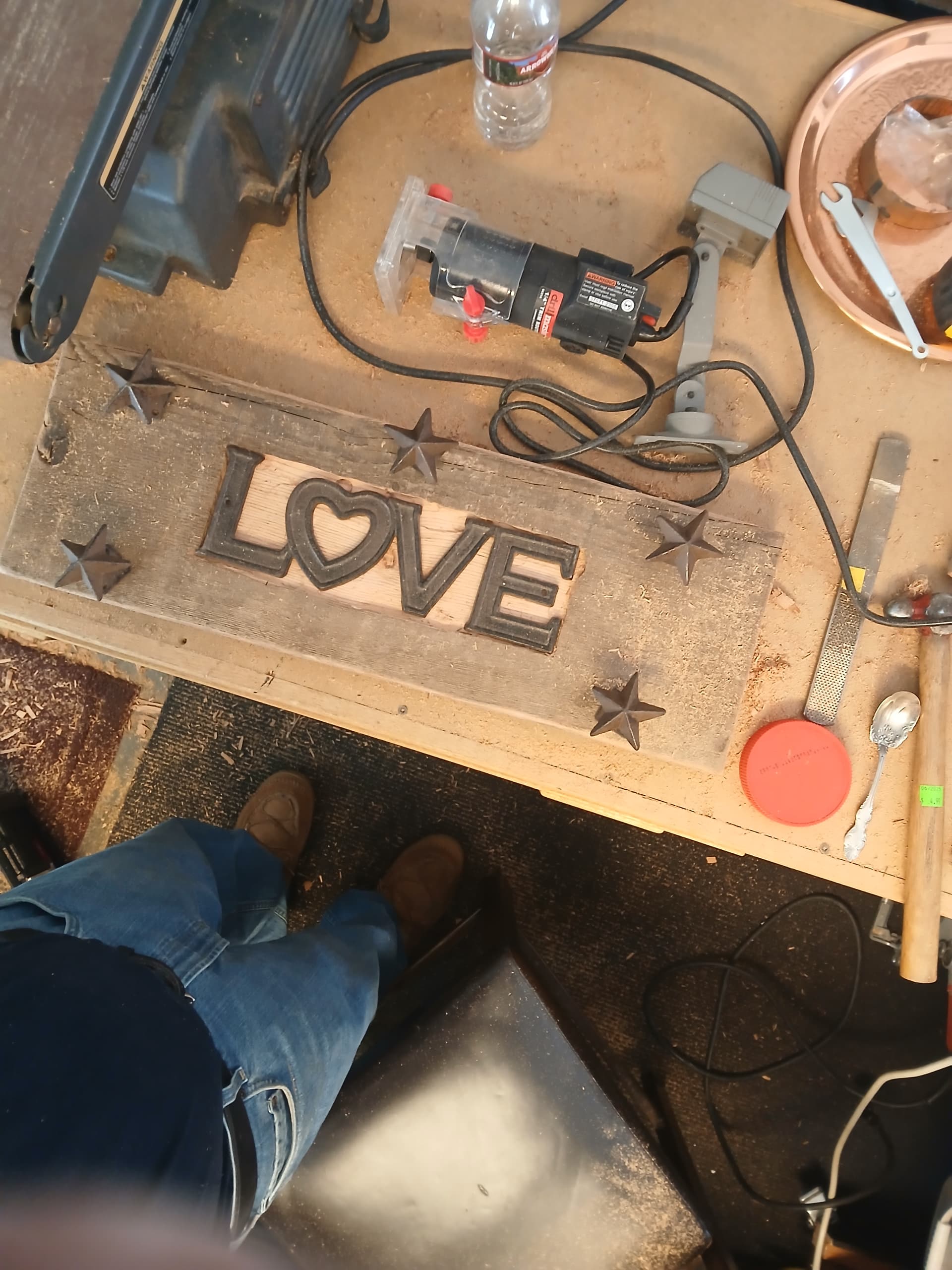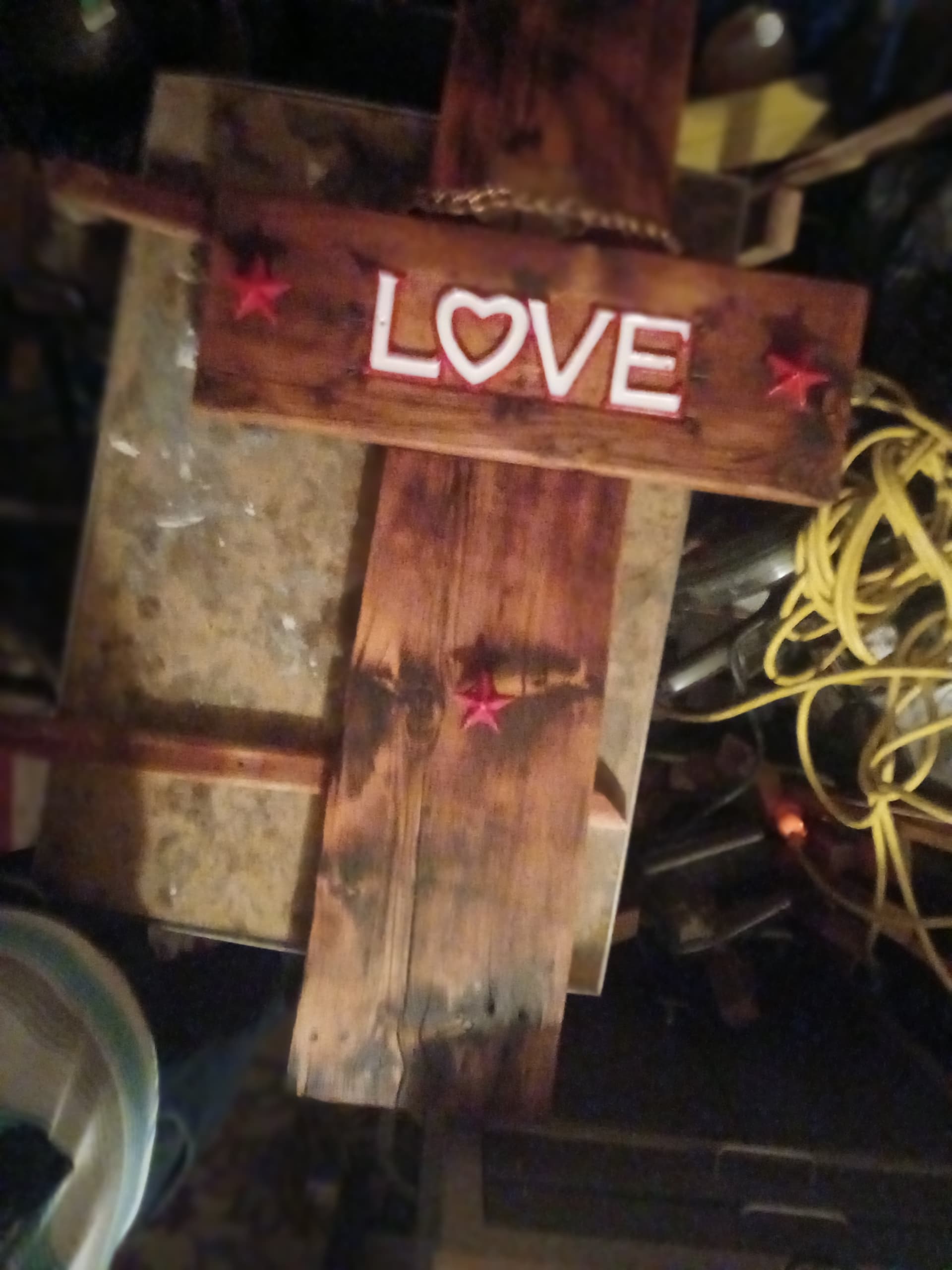 If You get a chance post a pic of your GTR work I would be interested in seeing how you solved the design problems. I’ve played GTR for most of my life, first were the drums then GTR, and Now I’m Working on Piano and Digital MIDI Keyboard a part of my Workstation for Recording, I certified as a Pro-Tool “Operator”. and I also Paint Became Teachers Assistant At Our Junior College for awhile, Not recently. I am finding dealing with TIME is one of my biggest problems, finding more of it is in eliminating Interests I am not capable of and or not interested in enough to share space with my Other Interests. Wood Working, Art, Jewelry, Metal Sculpture, Music Composition, Recording, Practice, Practice, Practice, of all these. Takes lots of TIME money for materials. Time is the most important of All These. Sometimes I can combine. My Materials I Find In Many Different Places, This Is What I Love About Found Art. For Example The Cross I Shared In The Same Posting, The Wood Came from Re-Store Habitat for Humanity, Very Splintery Ugly Old Wood But I knew there was Beauty There I Just had to get rid of some Layers Of Time. Once I Did and Tung Oiled It Man It was worth it, Then The Letters LOVE Are Cast Iron I Found At A Community Sale Then A Year Later At the Same Sale I Found The Cast Iron Stars. Wire Brushed and Painted They Will Symbolically Represent Christ’s Sacrifice and His No. 1 Commandment LOVE . For His Crown Of Thorns, I’m using : Solid Copper Pipe, Sliced in 1 1/2 “ and Overlaid with Braided, Stranded Copper Wire (battery Cable, maybe?) and The Thorns Will be Represented in Brass, Copper and Stainless.
