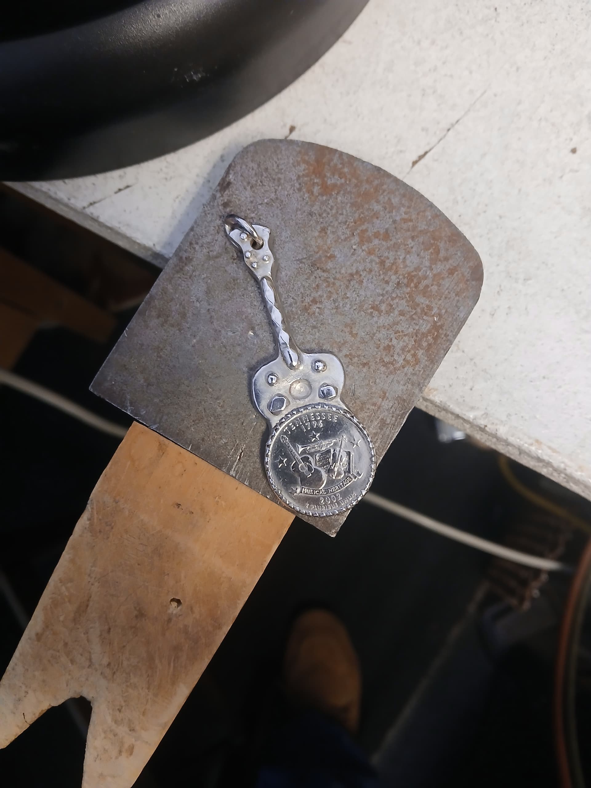 I have another one planned using the Tennessee quarter on one side and the Nevada quarter on the other side (wild Mustangs at Sunrise) I believe I’ll set them separately using Copper back plate because they will be attached and copper won’t come into contact with skin, just the quarters and the 100% Silver Bezel material.