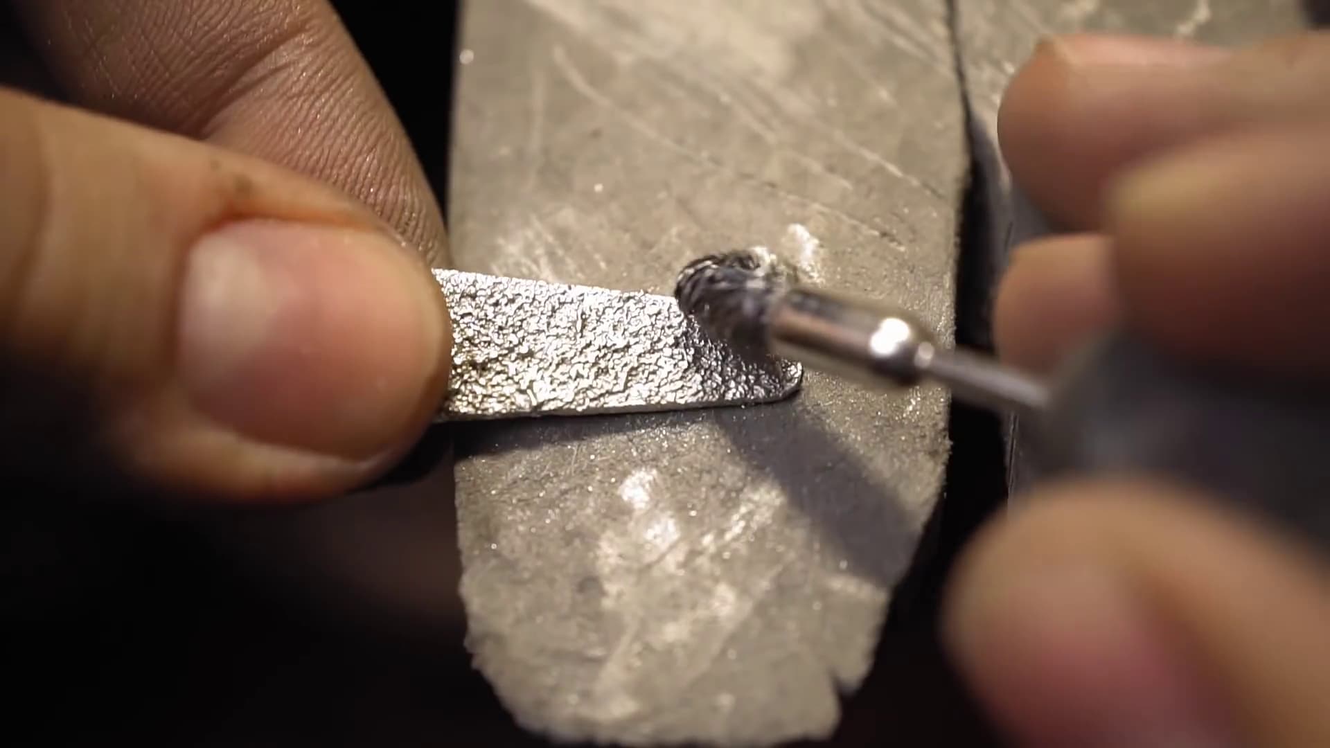 Do you know what type of burr is being used to refine the surface of the fused silver dust?